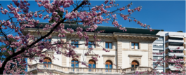 1. Scène urbaine basse définition (900px de large). Intention d'upscale simple. Petite difficulté à observer avec les branches d'arbres au premier plan.